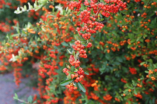 A tűztövis például elsőrangú madárbarát növény. Sűrű, tövises, örökzöld lombja védett búvóhely, míg termései ősztől tavaszig táplálékul szolgálnak a madaraknak.