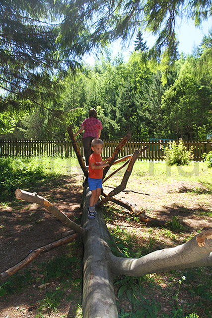 Valószínűtlen, Mászókahogy valakinek egy ekkora fa magától dőljönEgyensúlyozó ki a kertjében, de ha mégis, nem kell azonnal tűzifává aprítani. Ha az ágakat elég hosszúra hagyjuk, tökéletes (vízszintes) mászóka válik belőle annak a veszélye nélkül, hogy a gyerekek a kiálló ágakra felakadnának. Az ág nélküli, földre fektetett fatörzs is remek egyensúlyozó játék.